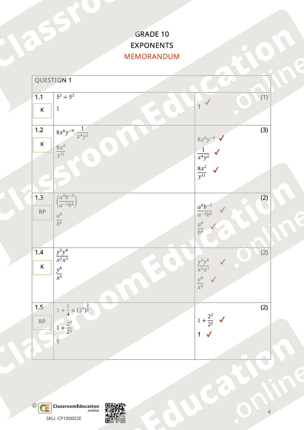 This assessment focuses on the basic knowledge and application of exponents and can be used as a class test or an assignment. According to both CAPS and the ATP, this should be done in term 1.
